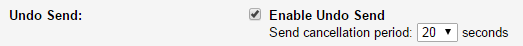 Next, scroll about halfway down the page. You’re looking for the Undo Send setting. Here’s what it looks like.