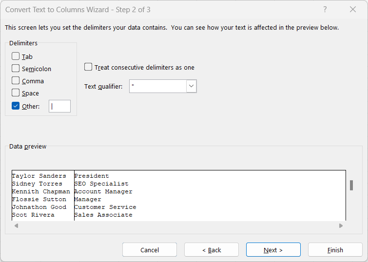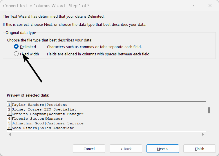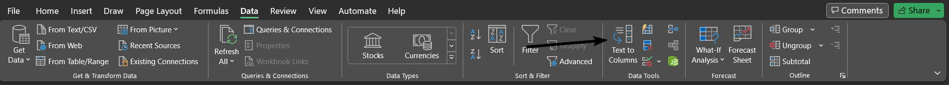 Fortunately, Excel offers a simple tool that helps to fix that: Text to Columns.