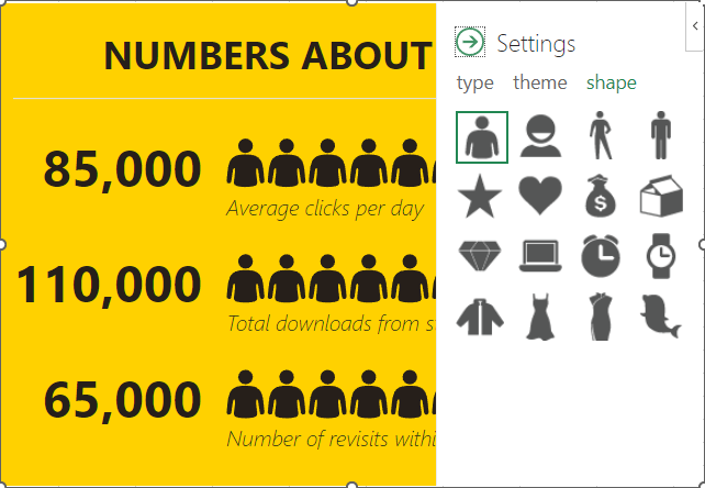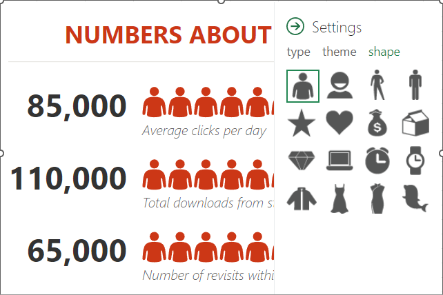 One of the Microsoft Office Add-Ins your organization can use is the option to use People Graphs for data visualization. The default icon is a person, but you can also customize it with various icons like stars, hearts, clocks, bags of money, or otherwise.